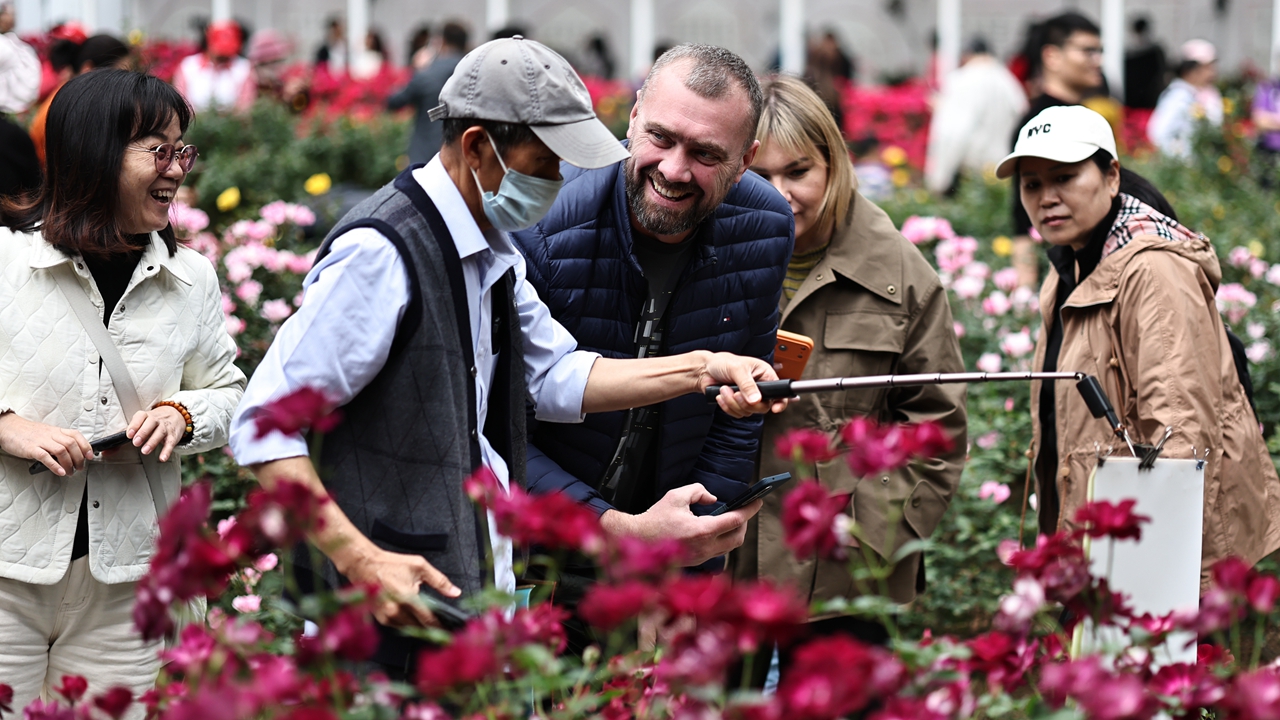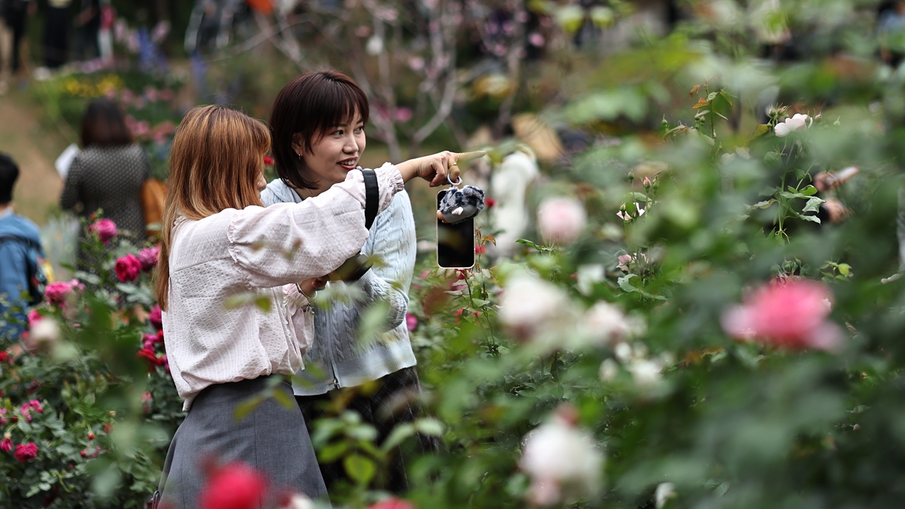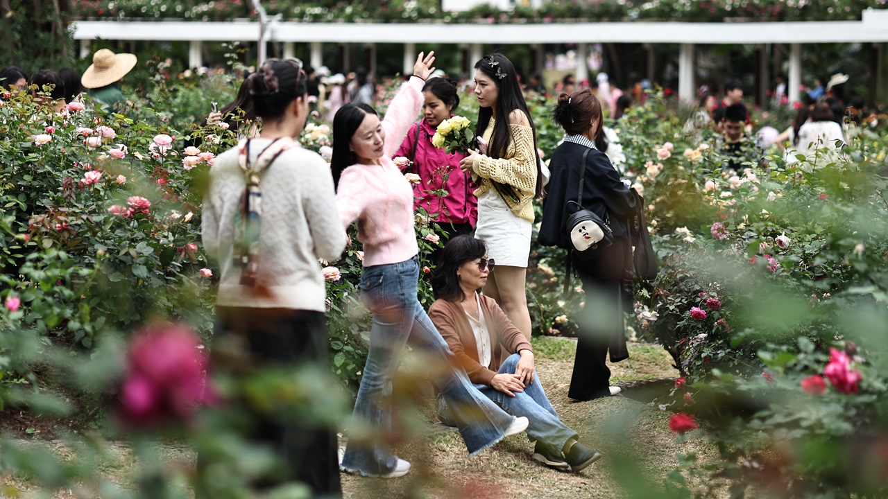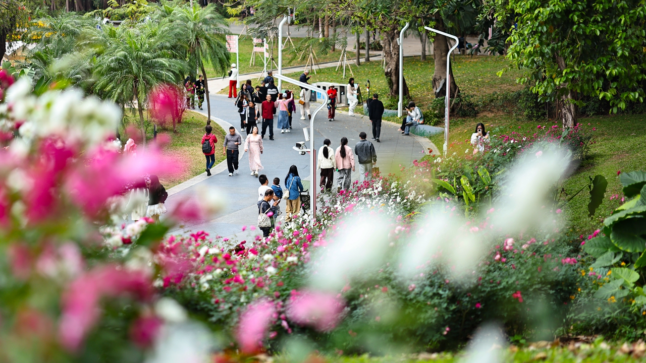 Visitors enjoy the picturesque views at Renmin Park in Luohu District, the main venue for the ongoing 2026 Shenzhen Rose Festival on March 11.