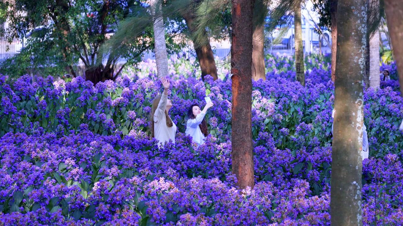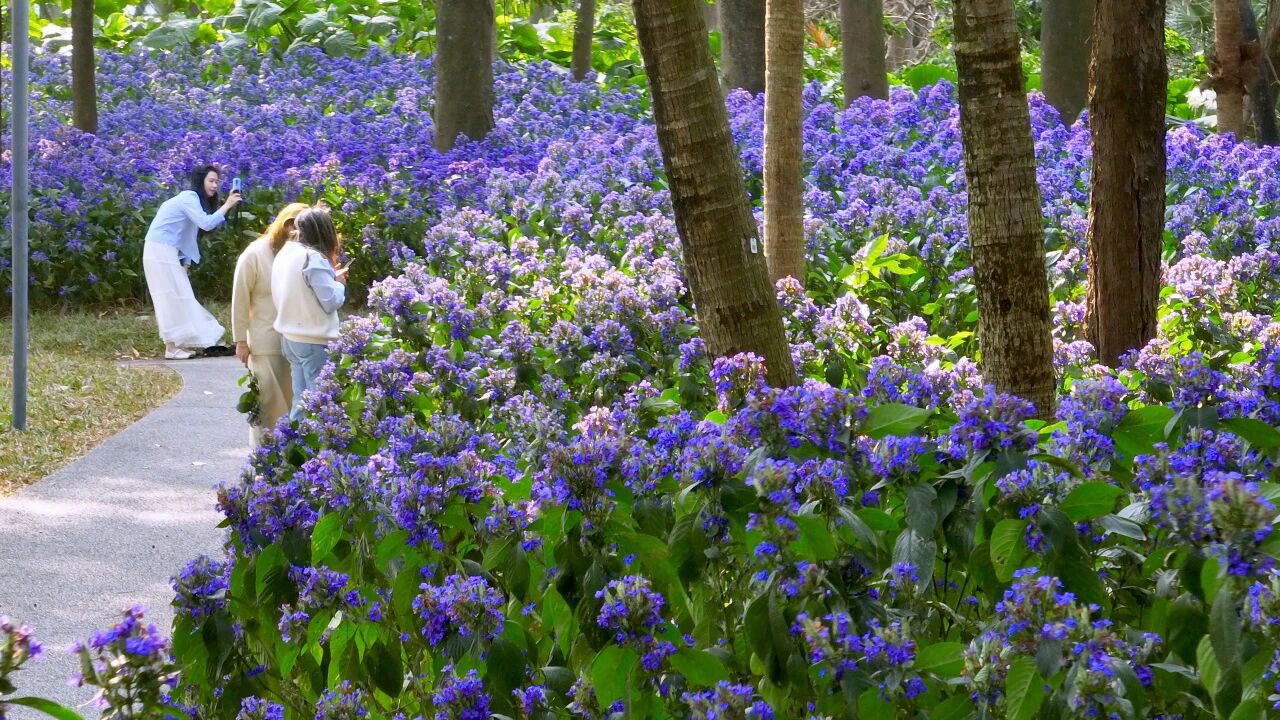 Step into a purple dream this spring! At Shenzhen Bay Park's Xiaosha Hill, a sea of blue eranthemum sways in the sunlight like a Monet painting come to life. Blue-purple blooms, gentle breezes, and endless photo ops — the perfect spring escape.