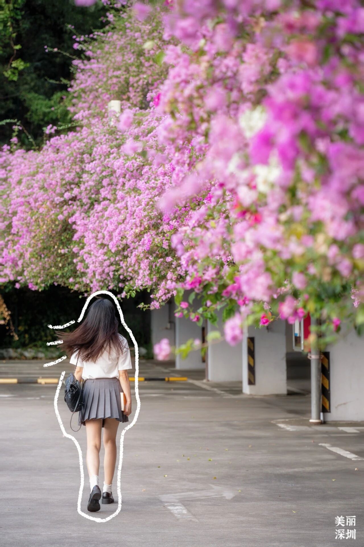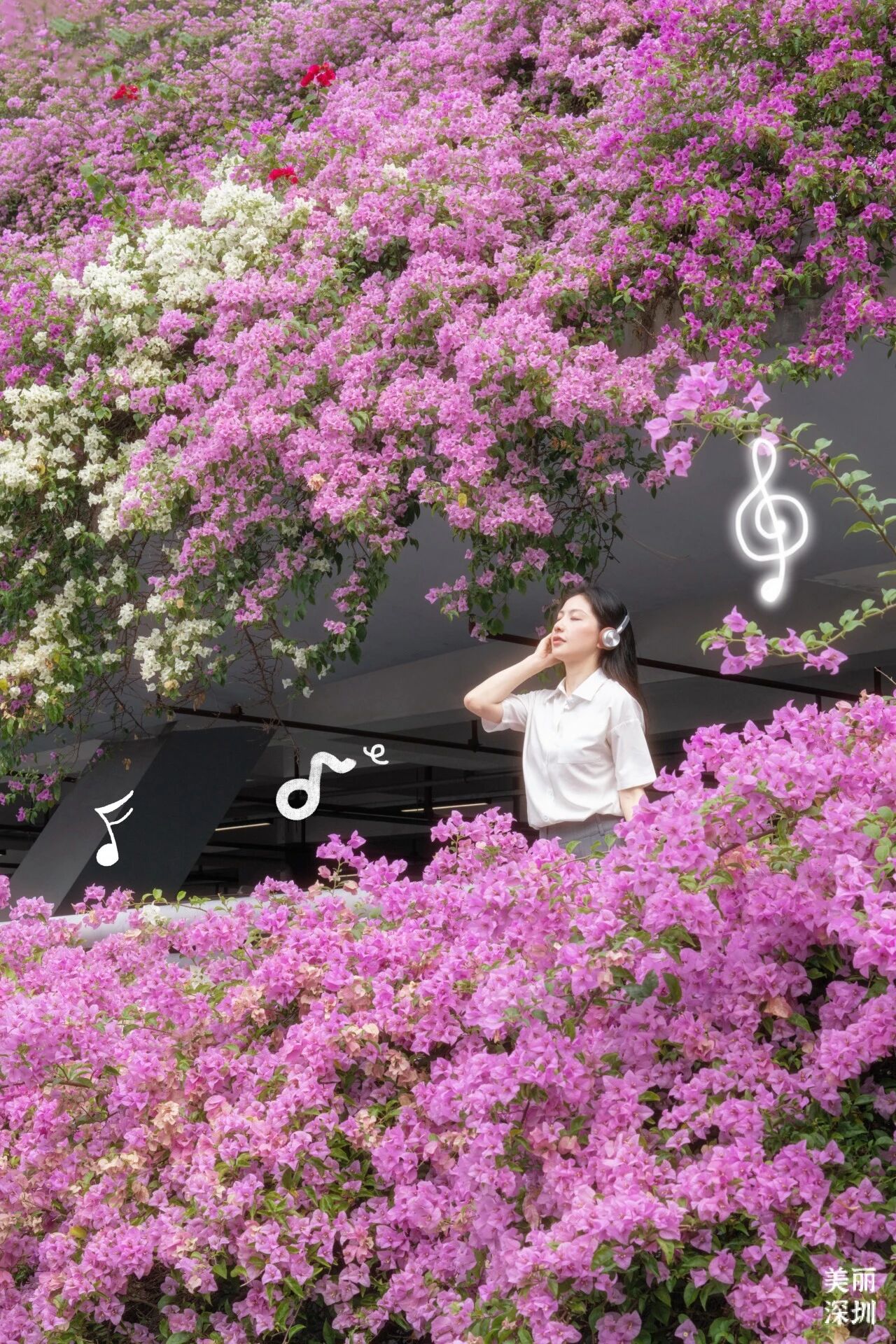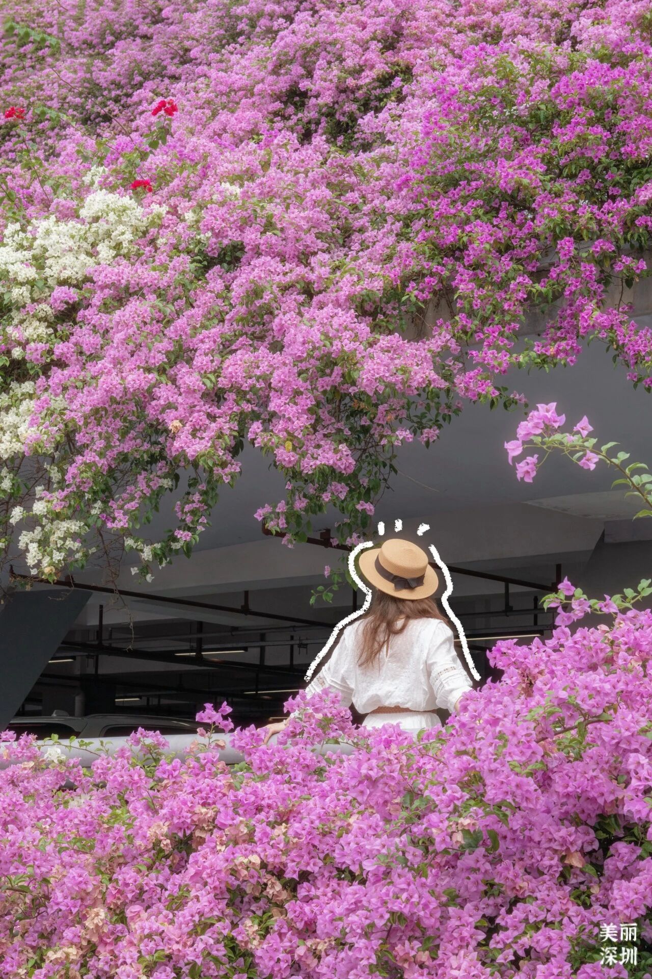 Every March and April, the Xianhu Botanical Garden's parking lot transforms into a cascading sea of bougainvillea. Seven floors stacked with blooms, cars and buses weaving through a waterfall of color — truly a photo lover's paradise!