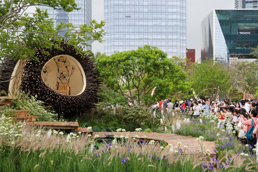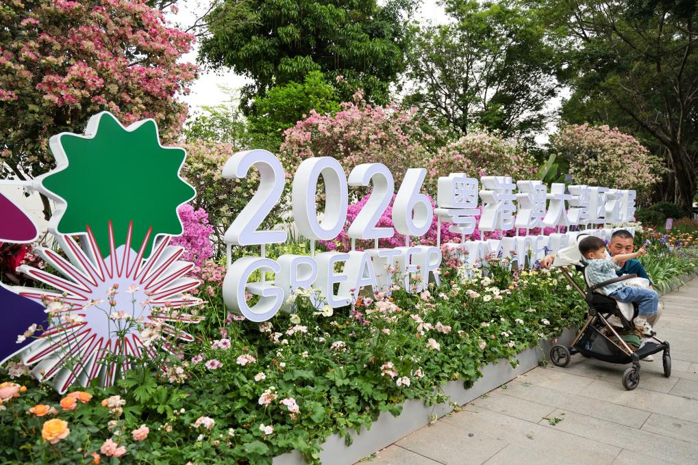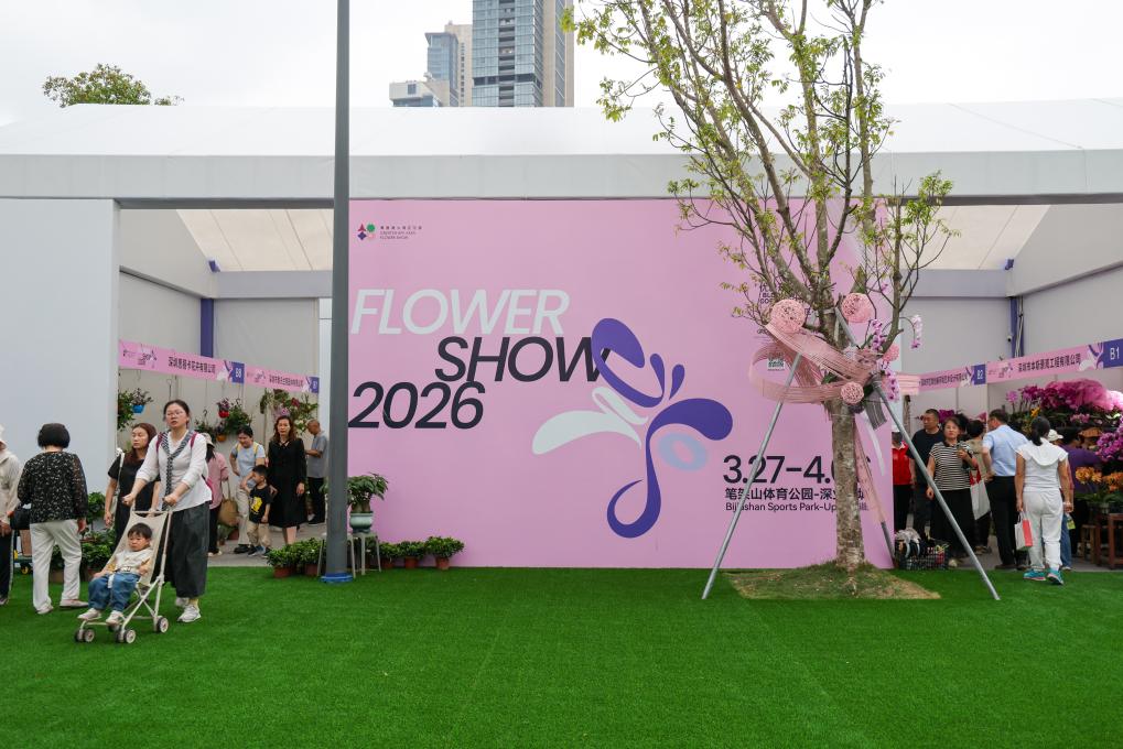 People visit a flower show in Shenzhen, south China's Guangdong Province, on March 27, 2026. The 2026 Guangdong-Hong Kong-Macao Greater Bay Area (GBA) Flower Show kicked off on March 27 at Bijiashan Sports Park in Shenzhen, and will run until April 6.