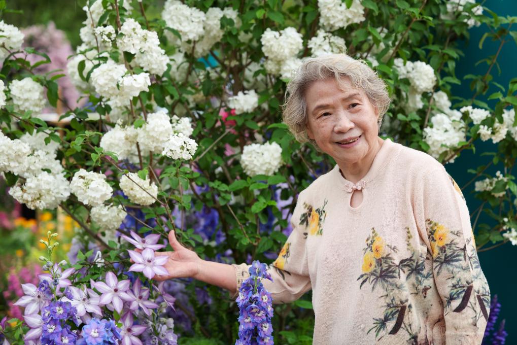 A tourist poses for a photo at a flower show in Shenzhen, south China's Guangdong Province, on March 27, 2026. The 2026 Guangdong-Hong Kong-Macao Greater Bay Area (GBA) Flower Show kicked off on March 27 at Bijiashan Sports Park in Shenzhen, and will run until April 6.