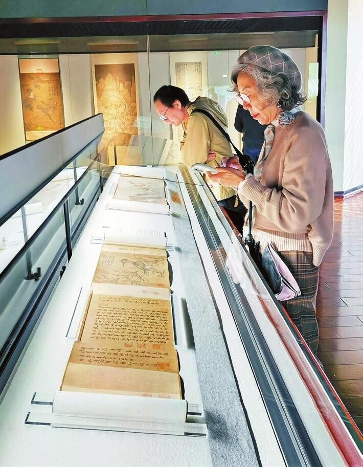 Visitors observe paintings and calligraphic works at the exhibition at Shenzhen Museum's ancient art division.