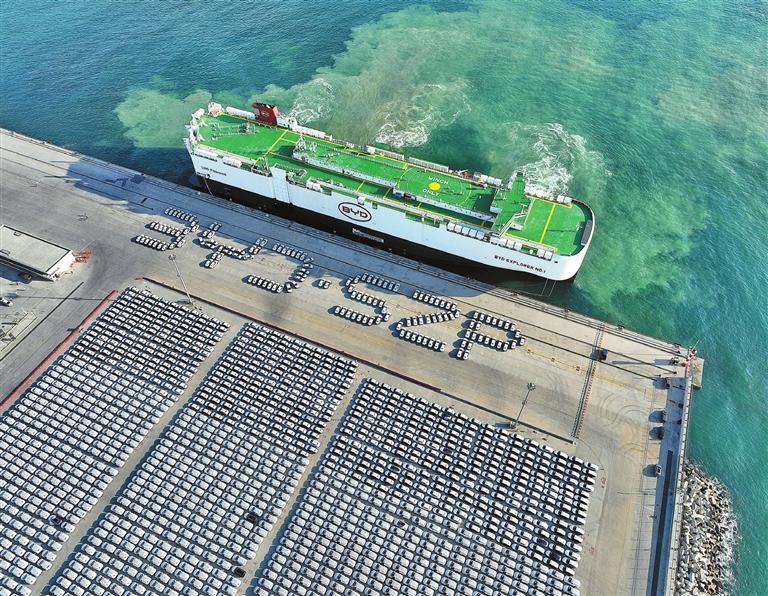 At Xiaomo International Logistics Port on Oct. 19, 2025, 1,380 BYD new-energy vehicles (NEVs) were loaded onto the company's ro-ro ship "Changzhou" bound for Brazil. This followed earlier calls by BYD's seven other vessels, including the "Explorer No. 1," "Shenzhen," and "Zhengzhou."