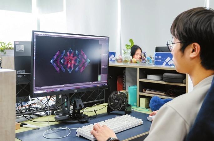 An employee designs patterns for drone shows at Damoda's office in Longhua District on Dec. 25, 2024.