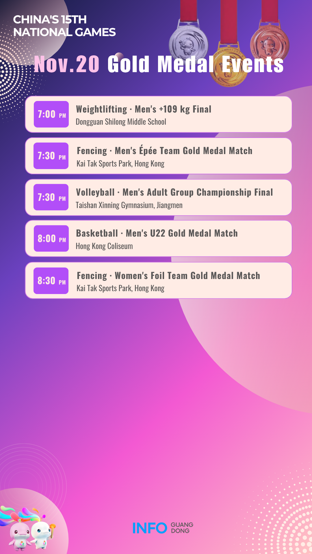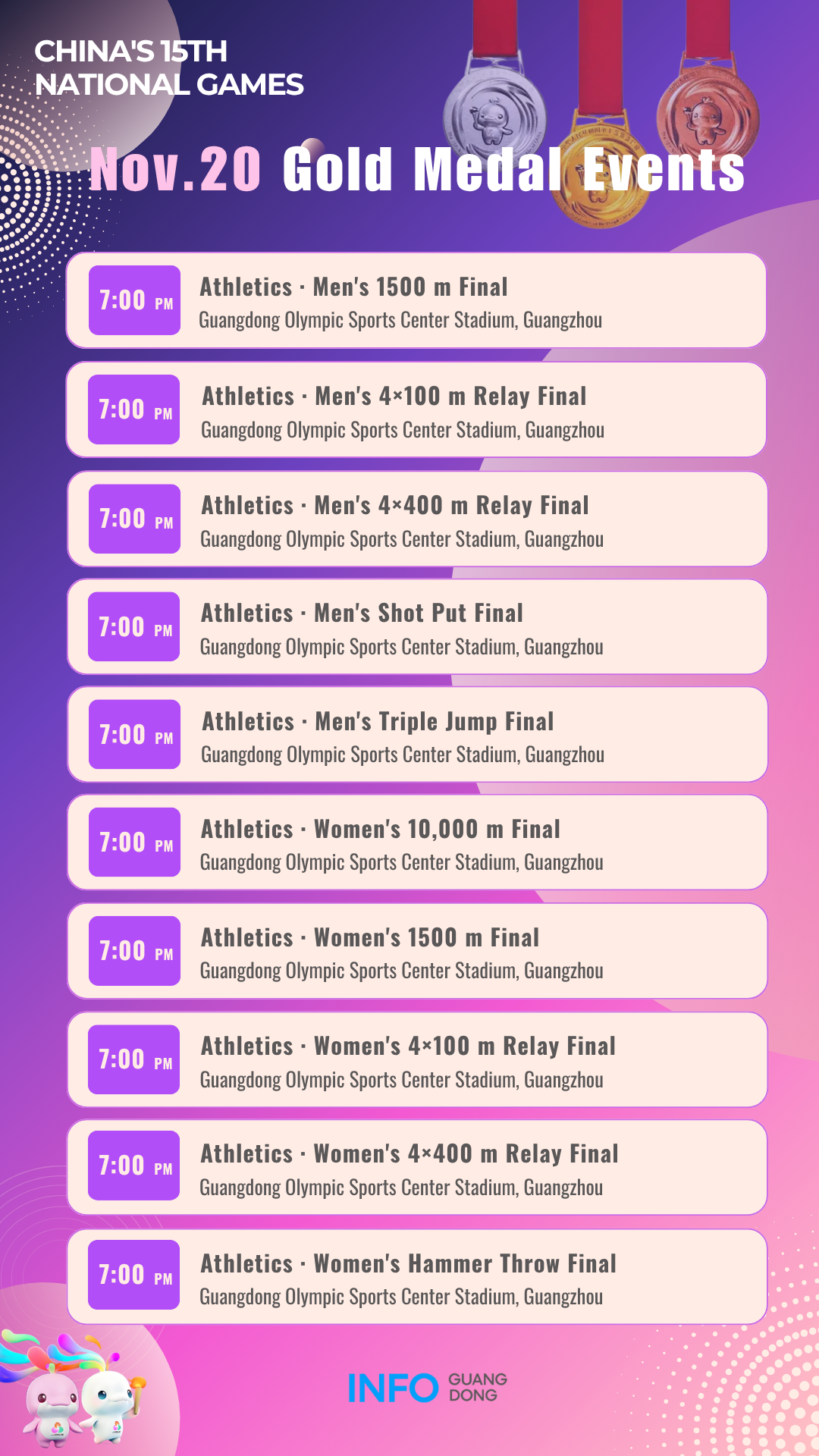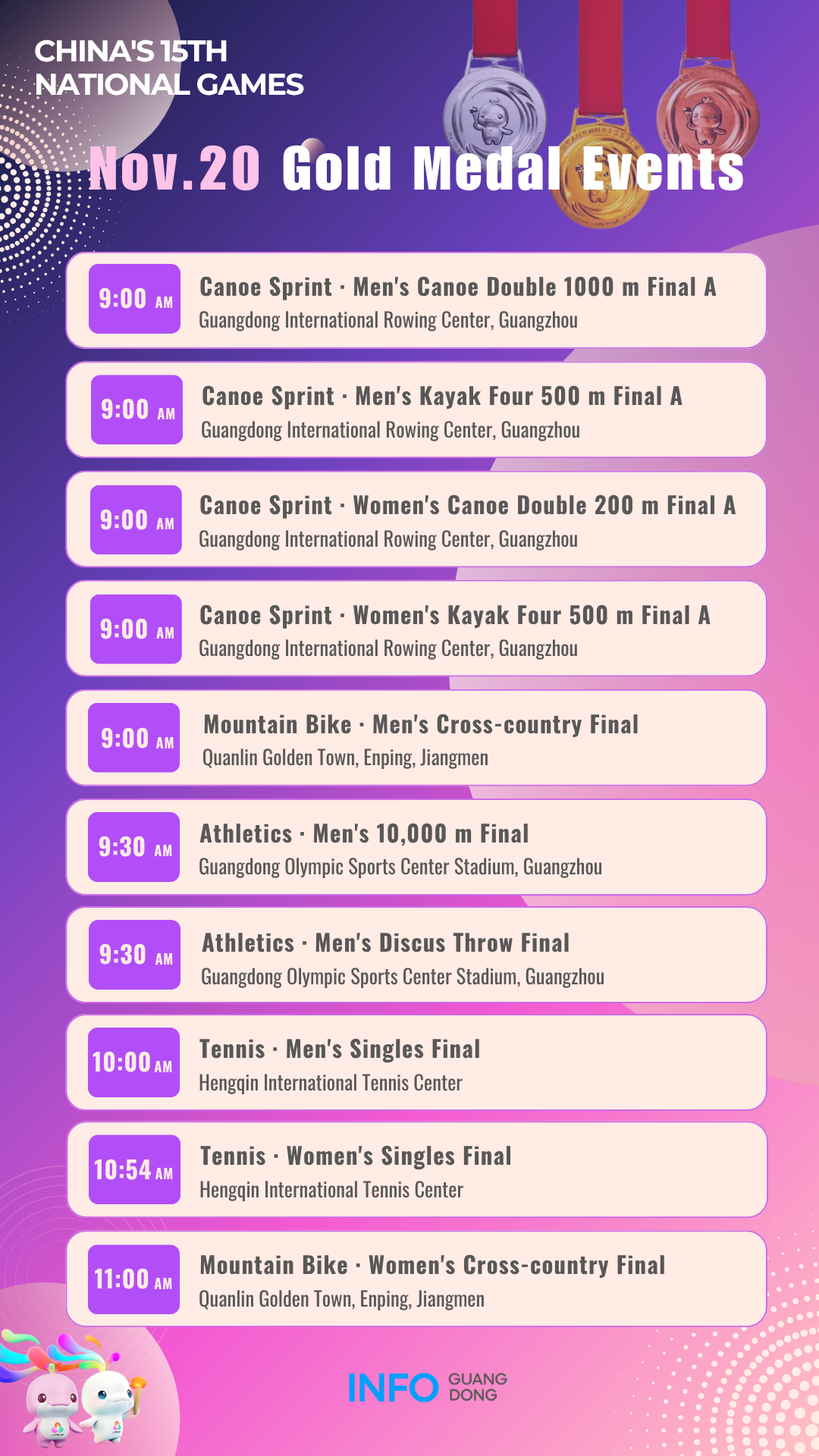Gold medal events on November 20 at China's 15th National Games