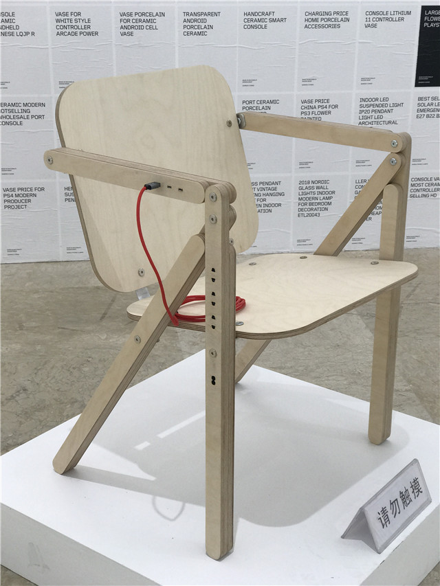 A dining room chair with battery-packed legs, wireless charging and sockets designed by Jari Miranda. (Photo by Cao Zhen)