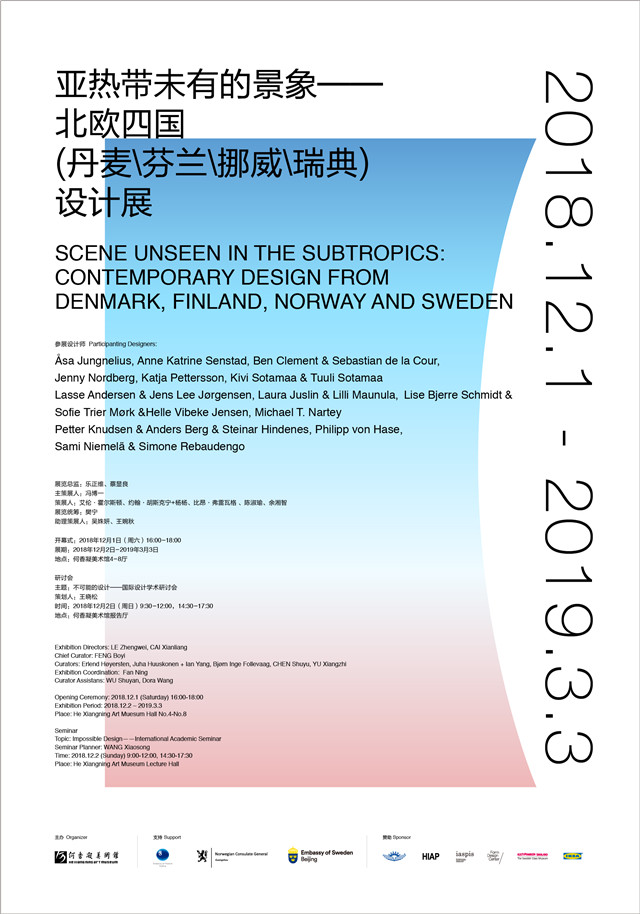 With Feng Boyi as chief curator and Erlend Hoyersten, Juha Huuskonen, Ian Yang, Bjorn Inge Follevaag, Chen Shuyu and Yu Xiangzhi as curators, the exhibition is divided into four parts: Denmark, Finland, Norway and Sweden.
