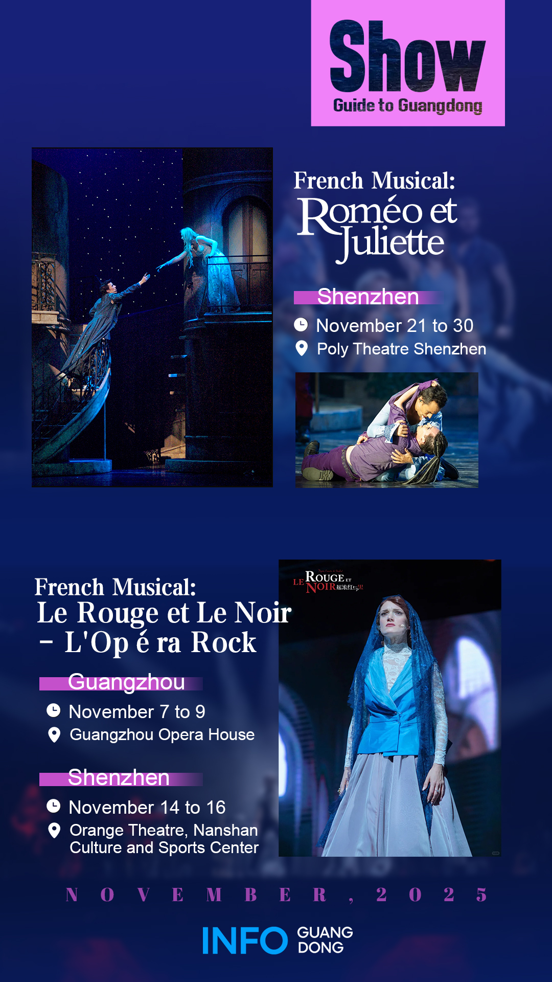 As autumn deepens, theatres and concert halls across Guangdong are set to light up with world-class performances. From Broadway hits and French musicals to symphonic anime concerts, November promises a month rich in creativity, passion, and artistry.