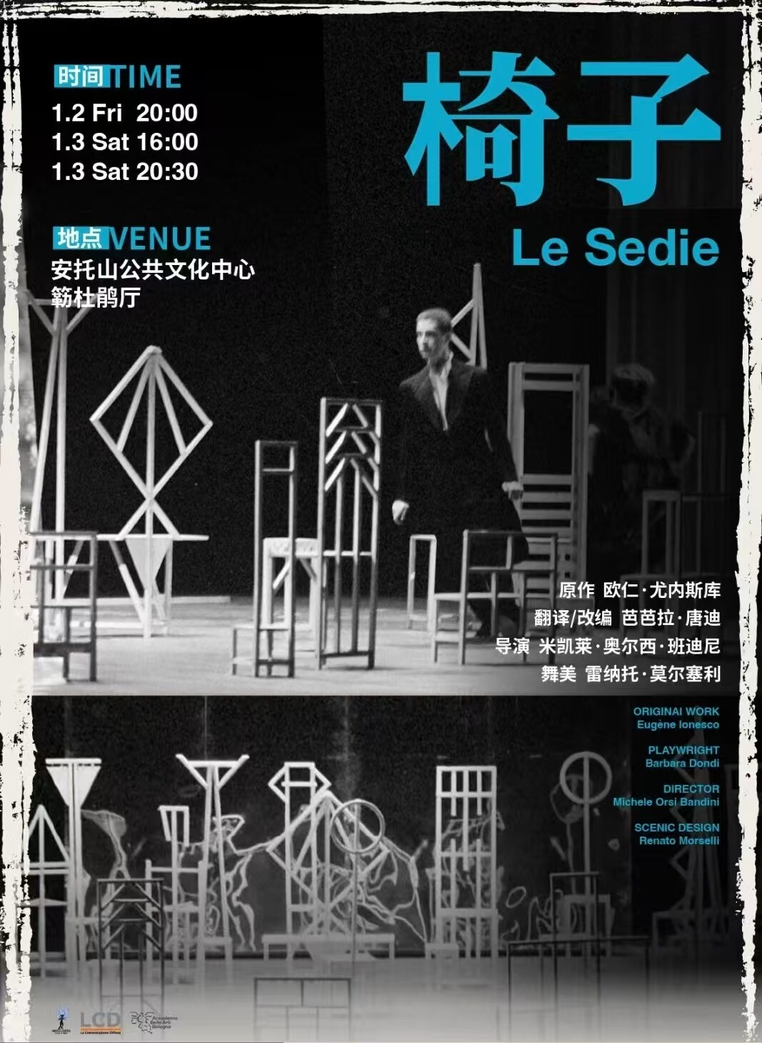 Longtime collaborators Michele Orsi Bandini and Barbara Dondi have adapted Eugène Ionesco's original with contemporary touches, using gravity-defying stage dynamics and minimalist aesthetics to explore isolation. The result is a compelling fusion of theater, installation, and movement — ideal for fans of European experimental theater.