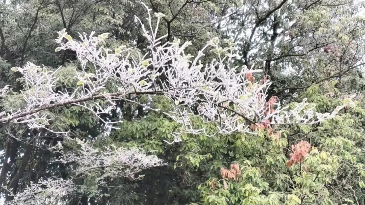Rime ice coats branches in the mountains of Qingyuan, Guangdong Province on January 21. Photo from WeChat account "广东新闻广播"