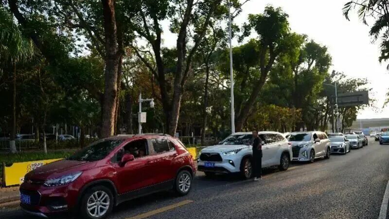 Vehicles line up at the entrance to Shenzhen Bay Park’s Lot 1 on the evening of February 4. The lot is located near the park’s bird-watching area, which typically draws heavier visitor traffic.
