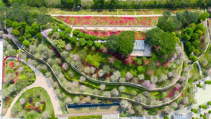 The main tree species selected for the plaza includes Delonix regia, Terminalia neotaliala and others. In the mountain park, planting includes Bombax ceiba, Bauhinia variegata, creating a magnificent landscape with a belt of flowers effect.