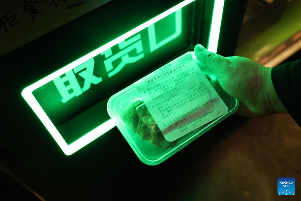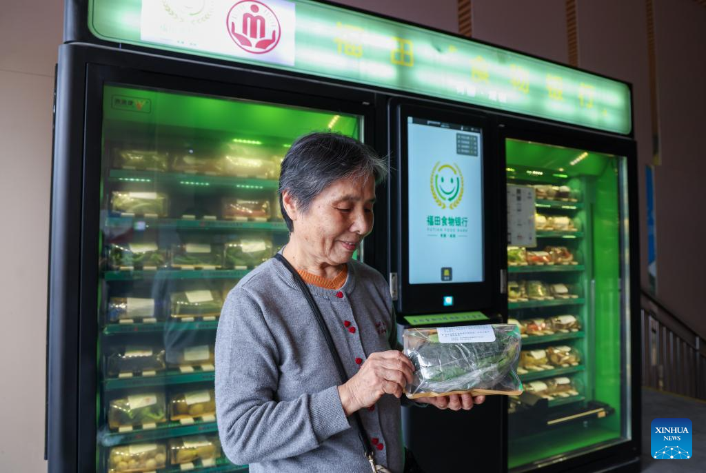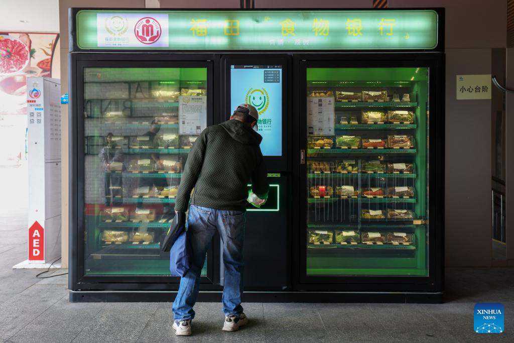 This photo taken on Dec. 20, 2025 shows a food bank terminal at Huanggang Village of Futian District in Shenzhen, south China's Guangdong Province.