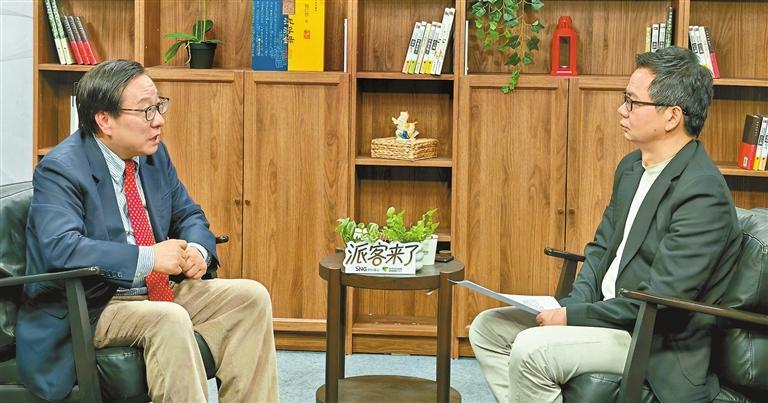 Gao Zhikai (L) talks to the host.