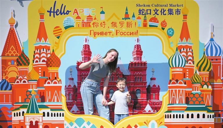Visitors pose for photos during the “Hello APEC · Shekou Cultural Market — Exploring Russia” event in Shekou, Shenzhen, on March 15.