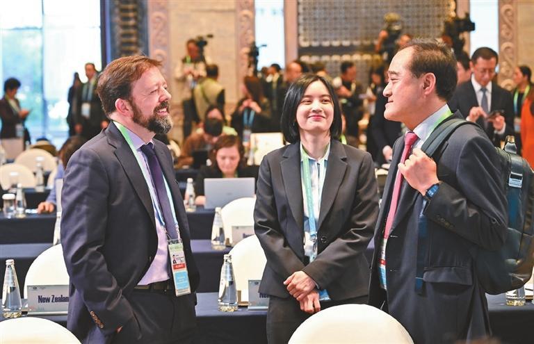 Attendees talk during the APEC Symposium and Informal Senior Officials’ Meeting in Shenzhen in December 2025.