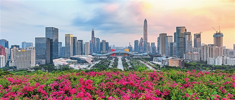 A panoromic view of the Futian CBD pictured from the top of Lianhua Hill.