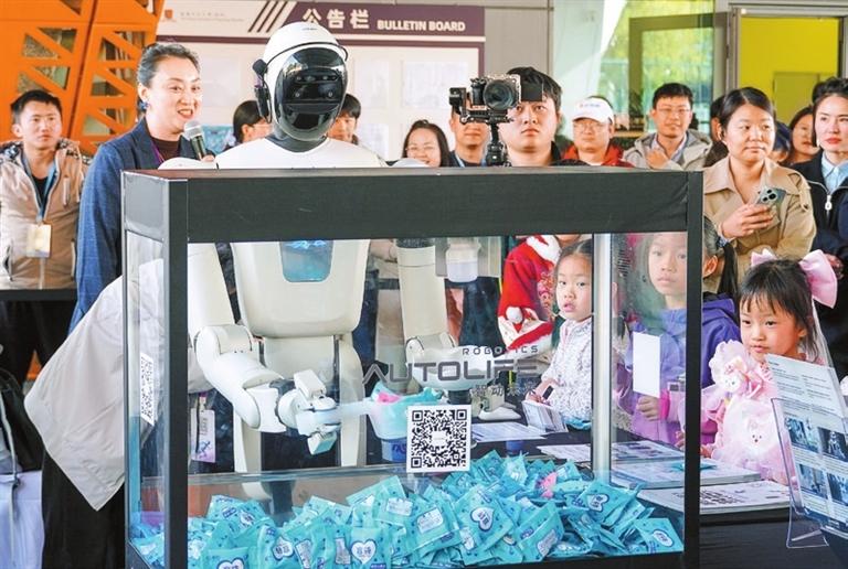 A robot distributes gifts to spectators at a robot skills competition in Longgang District, Shenzhen, in this Dec. 27, 2025 photo.