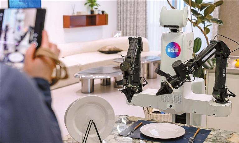 A humanoid robot developed by X Square Robot performs a table-setting task in Nanshan District, Shenzhen, on March 27.