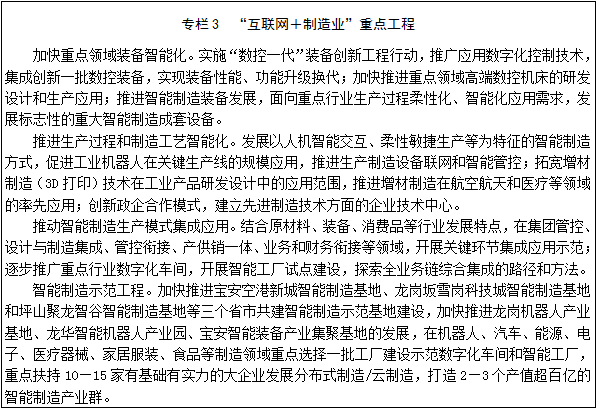 ——信息化引领经济转型升级成效显著。“互联网+”深入推进,移动互联网、大数据、云计算、物联网等与各行业深度融合,工业互联网和智能制造规模持续扩大;“互联网+服务业”的新业态不断涌现,互联网平台经济蓬勃发展;推动物联网、云计算、大数据、移动互联网和集成电路等产业发展,培育一批具有完全自主知识产权的龙头企业,信息产业核心竞争力大幅提升,成为创新、活跃、高端的全国信息经济引领示范区。
