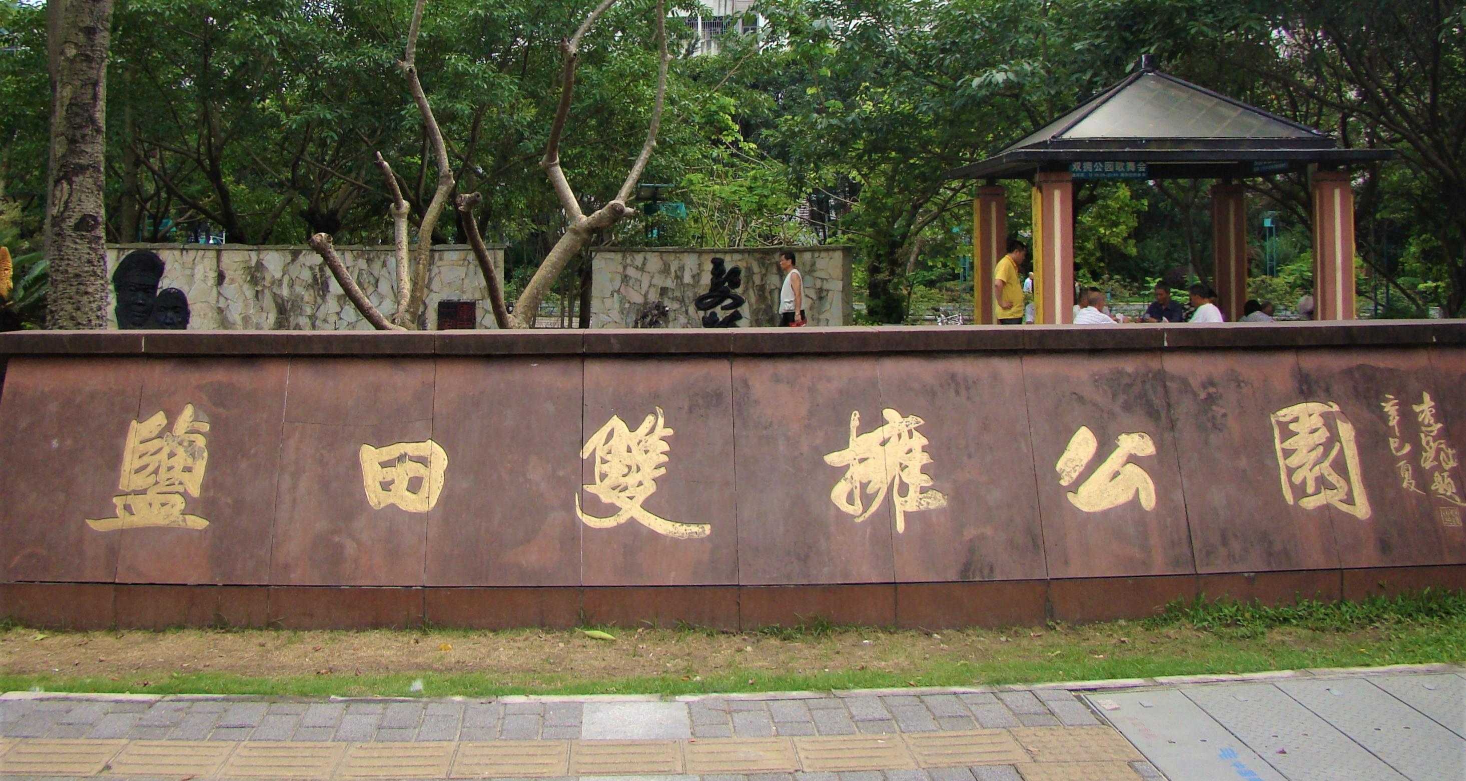 盐田双拥公园以滨河绿地为主体,以“拥军优属,拥政爱民”为主题,在保持“两绿夹一河”的景观特色前提下,以雕塑、浮雕墙、开国元勋书法、石刻等表现手法,歌颂了军民之间的鱼水深情。
