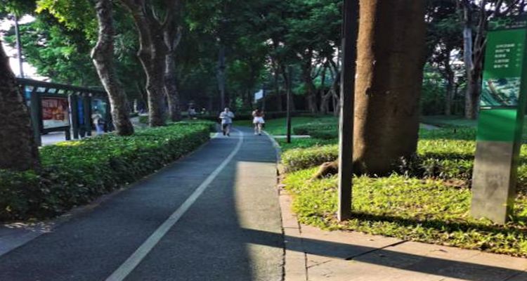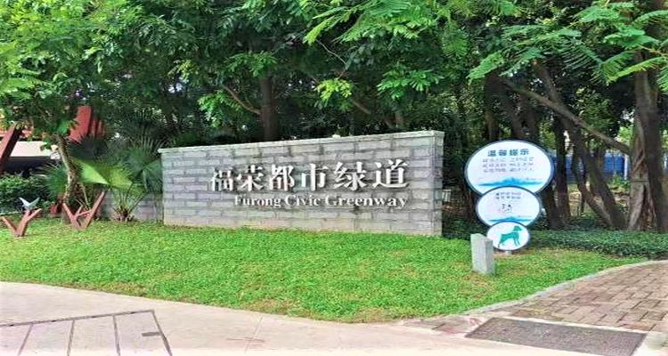 福田区 福荣都市绿道为体育健身型绿道,由原高速公路防护林改建,东起新洲南,西接红树林,总长度3.08公里,总面积10.27万平方米,是福田区绿道建设、大运提升的一项惠民工程。其中建有羽毛球场、篮球场、门球场、太极广场、慢跑径等健身场所,贯穿翠湾、沙尾、沙嘴、金地、上沙、下沙、金碧7个社区,惠及沿线居民30万多人,是市民朋友亲近自然、休闲锻炼、漫步景观、放松身心的和谐绿色空间。绿道亲民与生态,荣获2012第二届国际景观规划设计大会金奖。