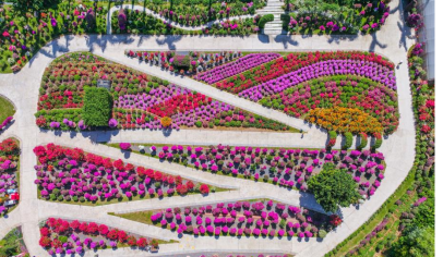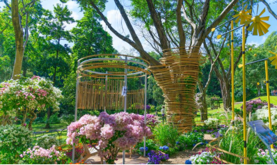 莲花山公园作为主会场,布展面积逾20万平方米,采用“一主线·八片区”布局,汇集近320个簕杜鹃品种,设置20个特色景点。重点展区包括:紫陌园——新开放的簕杜鹃专类园,占地约7000平方米,集观赏、科普与生产功能于一体,设有观赏科普区与育苗生产区,配套花墙、科普展棚及绿化废弃物循环利用示范点;毓秀园——位于金桂路与红榄路交汇处,占地约18500平方米,展示近万盆簕杜鹃盆景、盆栽及新优品种,其中5个品种为首次亮相;城市花集——位于椰风林草坪,汇聚多家花卉企业,打造沉浸式花文化体验空间;企业花园与高校花园——由本地园林企业与高校师生设计,融合传统与现代理念,展现园林艺术与青年创意。