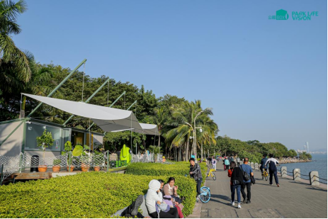 在这里,市民不仅可以欣赏到“飞鸟亭”“薛峰花园”等兼具美学价值与实用功能的艺术构筑,还能在“烟囱小屋”“浮坪”等场景中,体验定制化的轻餐饮与文创服务,感受新型公园生活场景的独特氛围:在“十日谈”咖啡香中眺望海天一色,在VIVO影像店用长焦微距捕捉飞鸟的灵动,手握“茉莉奶白”“霸王茶姬”与朋友闲谈,或于落日时分捧一杯“混果汁”的公园限定特调,收藏落日余晖——这些自然与生活交融的场景,让艺术构筑成为美好生活的容器。