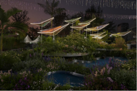 “启航园”由深圳意向策划设计有限公司设计,深圳市方森园林花卉有限公司、深圳中埔信科技集团有限公司、深圳市深水水务咨询有限公司共建施工。作品以深圳“山、海、城”交融的城市格局为灵感,构建集绿意山体、生态水景与休憩空间于一体的立体景观。繁花之境展现城市活力,深绿林荫呼应山体生态,潋滟水景映照滨海特质,静谧休憩空间承载都市慢活步调。