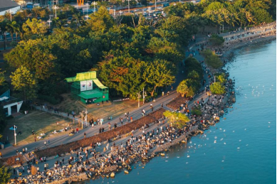 深圳湾公园BOX坐落在深圳湾公园的东段,以一条长约2.7公里的滨海长廊为展线,自东向西串联起海韵园、中湾阅海广场及红树林海滨生态公园等核心节点。项目设有12处“BOX”景观构筑物,均采用环保材料建造,为非永久性、低干扰的轻量化设施。