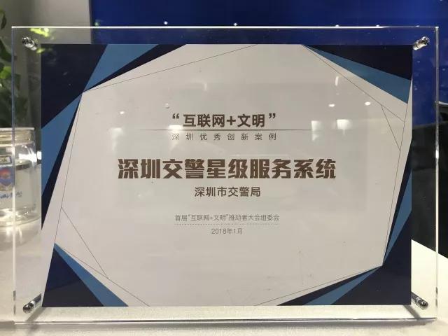 (图:深圳交警星级用户荣获“优秀创新案例”)