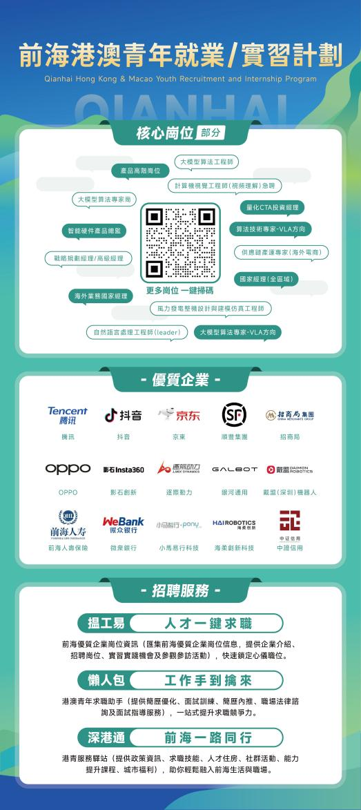 此次春招的圆满收官,是前海深化深港人才合作的又一重要成果。未来,前海将继续深化与香港高校、专业社会组织及行业协会的合作,优化人才服务体系,推动香港创新资源与前海产业生态对接,为港澳青年在前海“留得下、融得进、发展好”提供有力支撑。