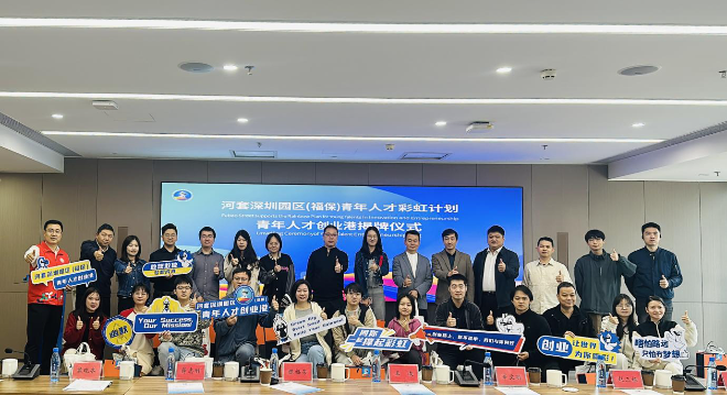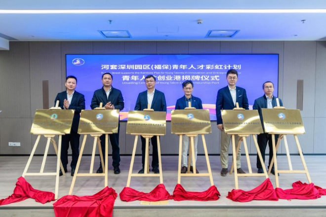 4月3日,福保街道青年人才创业港揭牌仪式在粤港澳大湾区国际人才驿站(河套)举行,港科大、蓝海湾孵化港、中芬设计园、粤港澳青年创新创业工厂等企业代表和首批入驻的深港青年人才代表,共同到场见证。