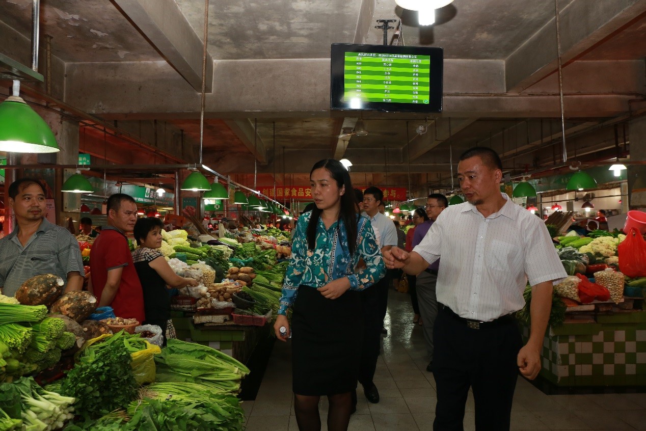 2016年9月14日,深圳市农产品股份有限公司董事长检查下属莲花二村集贸市场。作为全市最大的“菜篮子”,该公司目前经营的蔬菜、水果、冻品、干货分别占深圳市民消费量的85%、90%、90%和60%以上,并形成了一套检查督导机制,制定印发了《创建工作检查评比标准》和《创建工作检查评分表》。2016年以来,开展督促企业自查自纠111次、互查13次,开展飞行检查52次;组织下属6家农贸市场开展农药残留等项目快检,每天快检不少于15批次,排查食品安全潜规则及隐患158个。
