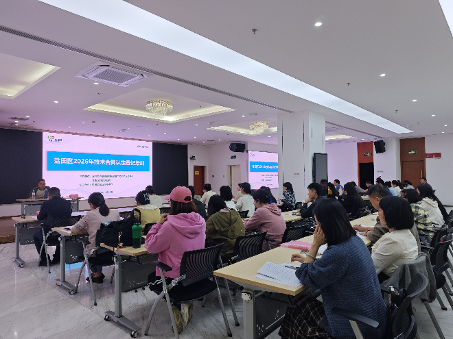 为进一步加强和规范盐田区技术合同认定登记工作,促进科技成果转化,2026年3月18日下午,盐田区科技创新局会同盐田区企业服务中心举办了2026年盐田区技术合同认定登记培训,辖区企业及科研机构代表40余人参加了活动。
