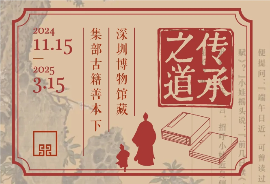 “传承之道”系列展览是深圳博物馆自主策划的原创古籍精品专题展,是广东地区首个大型古籍系列展览。该系列按经、史、子、集的序列,分7年全面向观众展示深博馆藏善本,突破了国内一般古籍陈列思路,提炼各部类古籍展品的独特人文历史主题,是深圳博物馆在古籍保护与利用、弘扬中华优秀传统文化的一次探索和尝试。