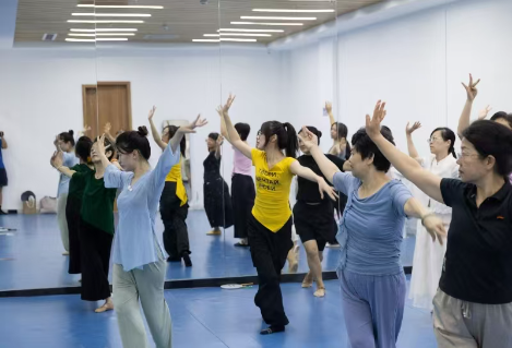 课上,专业舞蹈老师带领学员们通过预备运动,拉伸等系列预备动作练习,兰花手,团扇运用教学,继续学习剧目《青花瓷》。学员们放松了身心,增强了学员们的身体柔韧性,提升身体力量感,改善身姿,舞感,练习了团扇运用,学员们收获满满。