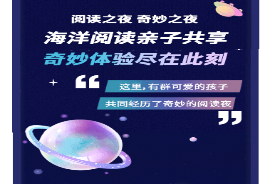 邀请国内知名儿童文学作家、阅读推广人带领辖区家庭夜读,鼓励儿童及青少年将海洋阅读与海洋文学、海洋环保、海洋科普、海洋历史的阅读和学习集合起来,打造充满海洋氛围的亲子之夜、阅读之夜、奇妙之夜。