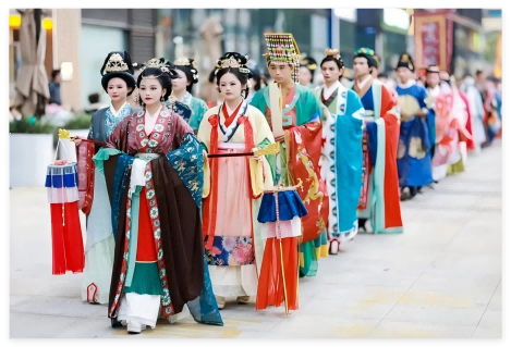 表演者着曲裾、襦裙演绎东方美。现场设国风打卡点,穿汉服打卡出片率100%!