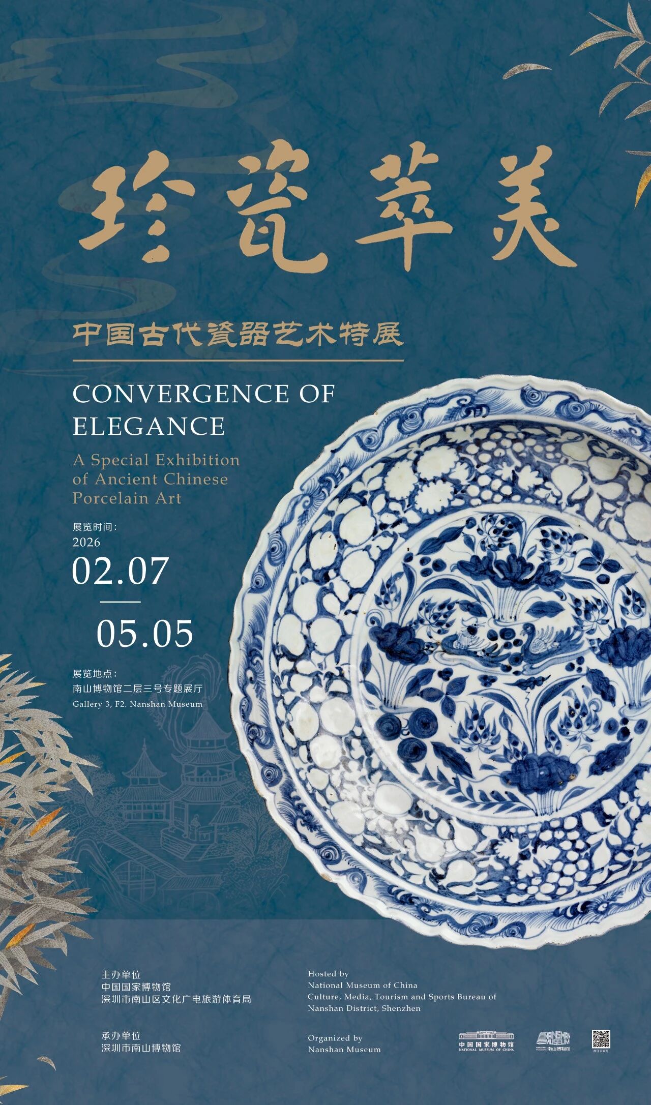 2月7日上午,由深圳市南山区文化广电旅游体育局和中国国家博物馆联合主办、南山博物馆承办的 《珍瓷萃美——中国古代瓷器艺术特展》 正式对公众开放。本次展览共分为“人间·青白”“窑变·霁霞”“凝粹·多彩”三大单元,从早期对玉质感的不懈追求,到后来对各类材质的高度模仿;从单色釉的纯粹内敛,到彩瓷的繁华绚烂;从实用器皿,到陈设珍玩乃至精神寄托。这不仅仅是一场文物的集合,更是一次对中国瓷器美学的系统梳理与深情致敬。