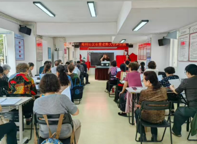 近日,海桐社区开展长青老龄大学声乐培训班。40余名长者齐聚课堂,在专业老师的带领下开展学习。课堂上,老师采用逐句示范、分组练习的适老化教学方式,耐心指导大家纠正咬字与气息。学员们共同唱响经典歌曲,展现出新时代老年人老有所学、老有所乐、老有所为的精神风采。活动现场歌声嘹亮、气氛热烈,提升了老年人的获得感与幸福感,丰富社区老年人精神文化生活。