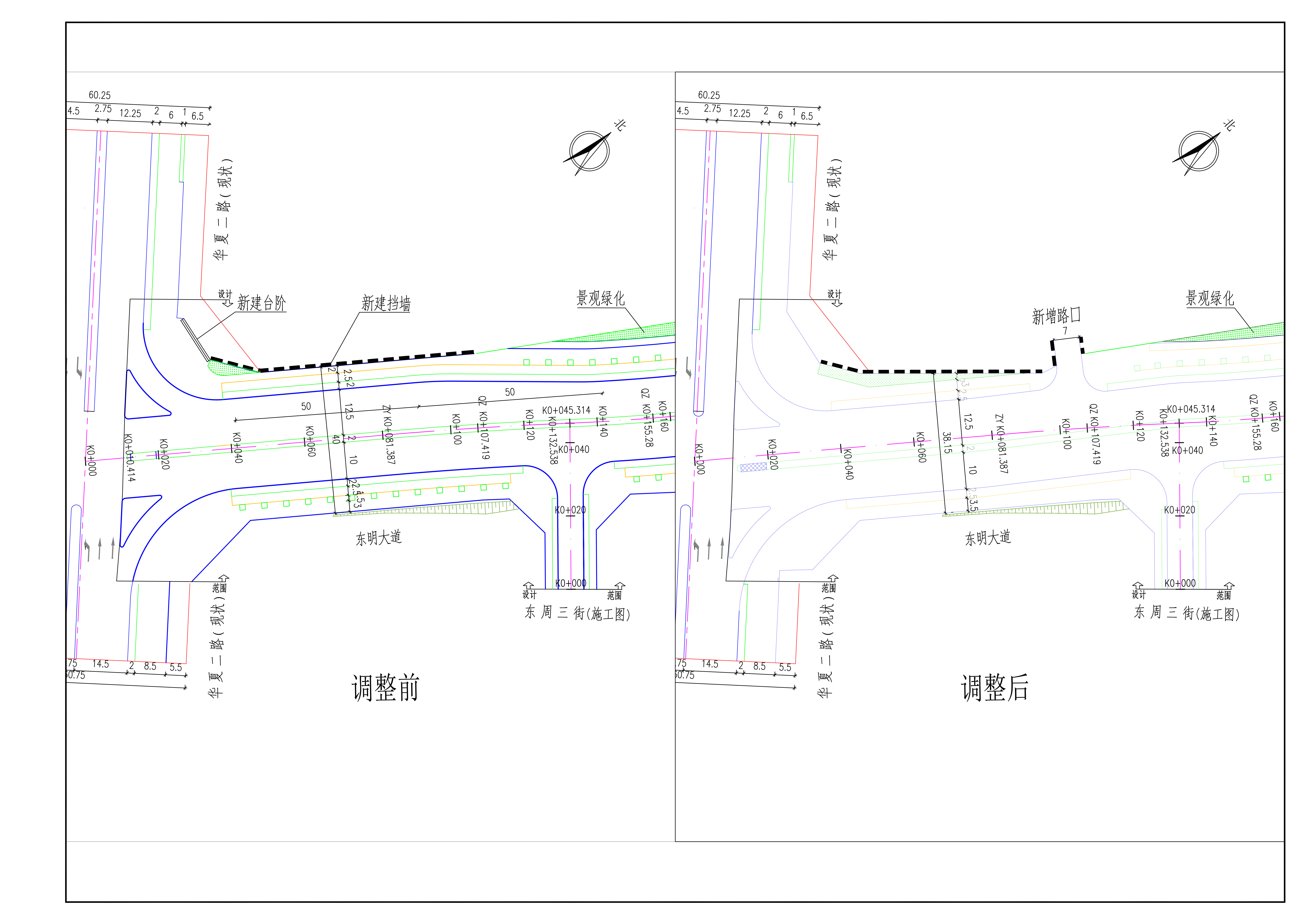 桩号K0+000-K0+132道路两侧优化慢行系统,桩号K0+100道路西侧开设机动车出入口,道路纵断面分幅设计。