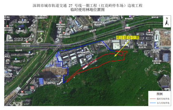 附件:1.深圳市城市轨道交通27号线一期工程(红花岭停车场)边坡工程临时使用林地及采伐林木位置图