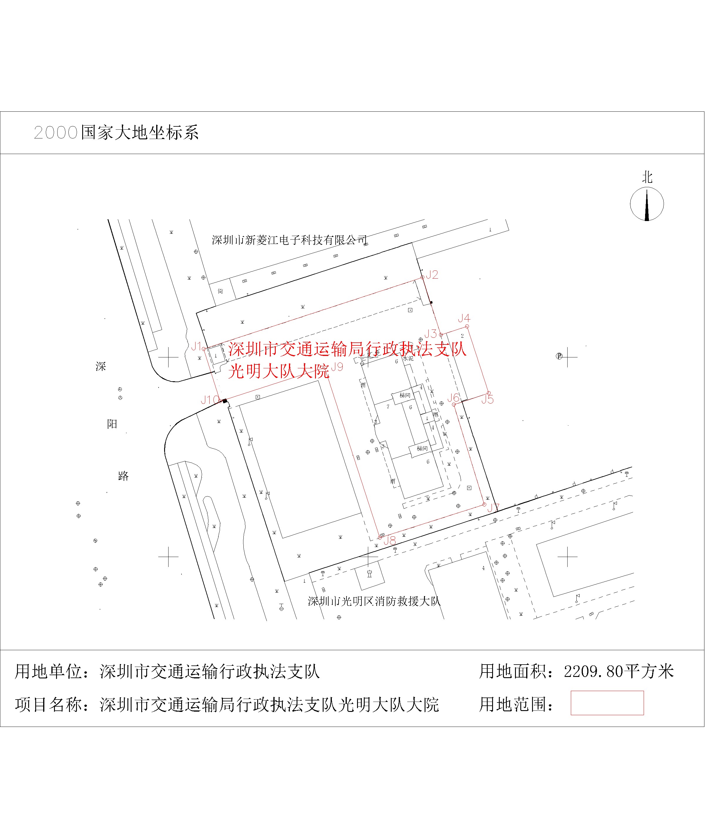 深圳市交通运输行政执法支队光明大队大院物业已纳入市直及税务党政机关办公用房确权登记项目清单,现将深圳市交通运输行政执法支队提供的物业用地范围进行公示,后续我局将结合公示等相关情况开展土地确权工作。上述物业位于深圳市光明区马田街道深阳路260号,物业土地面积共计2209.80平方米(最终面积以土地权属证明文件为准),申请确权的土地使用权人为深圳市交通运输行政执法支队,权属来源为行政划拨,现根据有关规定予以公示: