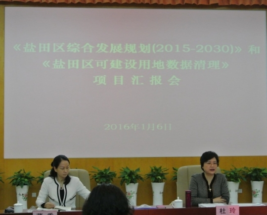 2016年1月6日上午,杜玲书记在区行政中心召开专题会议,区领导黄伟平、董秀、王守睿及区相关部门参加会议,听取我局《盐田区综合发展规划(2015-2030)》及《盐田区建设用地数据梳理》两个项目汇报。