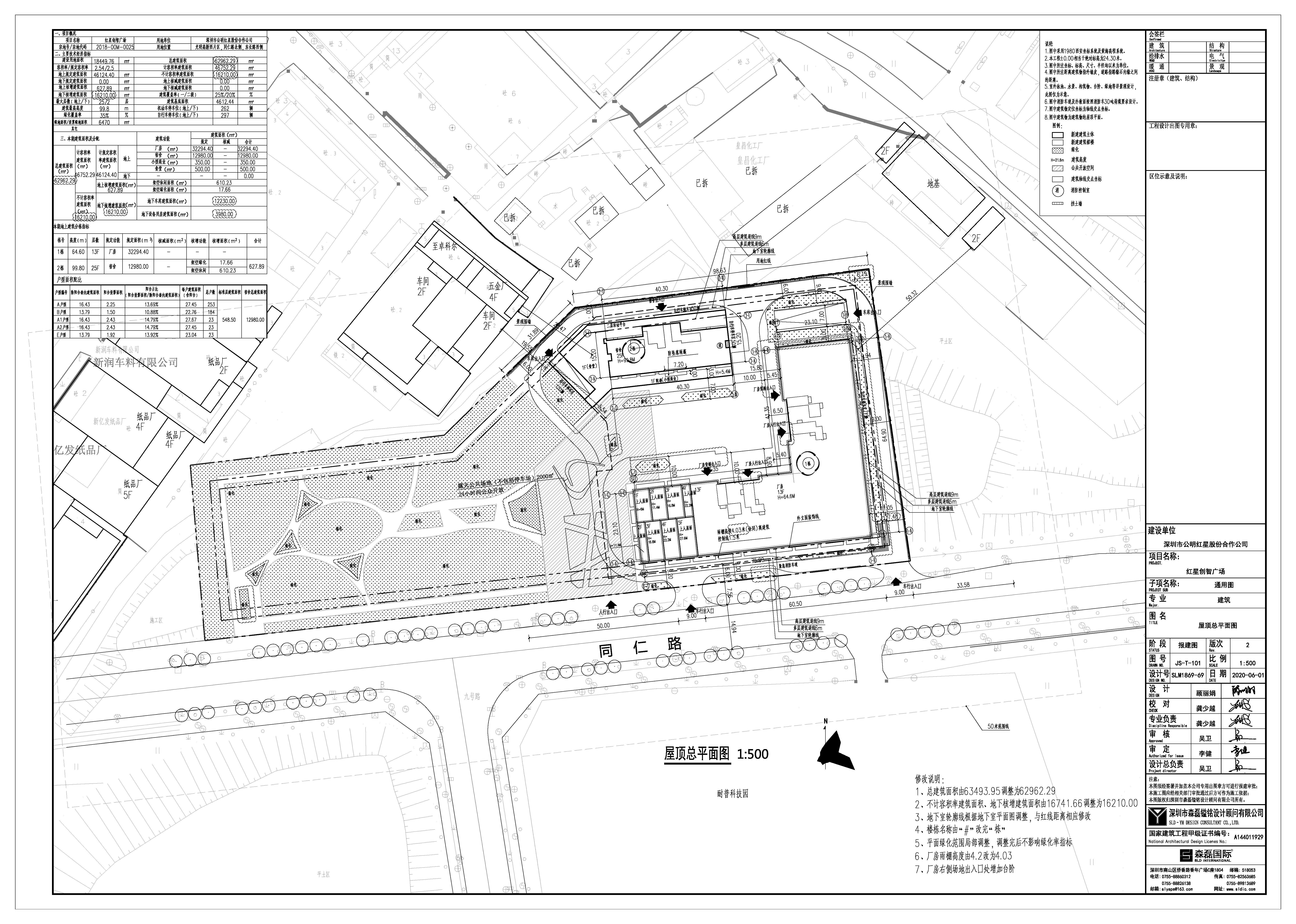 红星创智广场项目位于光明区玉塘街道光明高新西片区,十九号路北侧,东长路西侧,宗地号为A608-0168,该项目于2020年5月取得《建设工程规划许可证》(深规划资源建许字GM-2019-0010改1号)。本次调整的主要内容为(具体详见附件《屋顶总平面图》云线圈注部分):