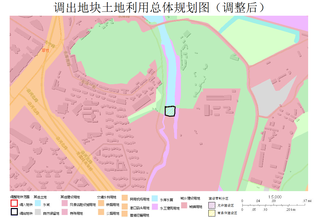 三、本次有条件建设区使用,调入和调出地块用地面积相等,在罗湖辖区范围内实现等面积置换,未突破上级土地利用总体规划确定的城乡建设用地控制指标和建设用地总规模,符合有条件建设区使用原则。