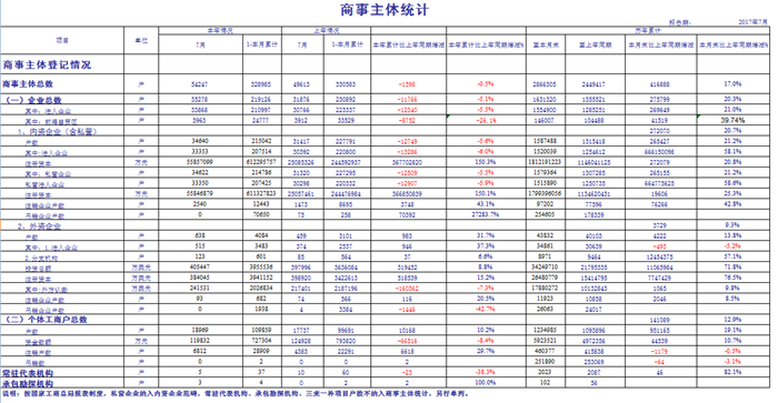 2017年7月份商事主体统计报表