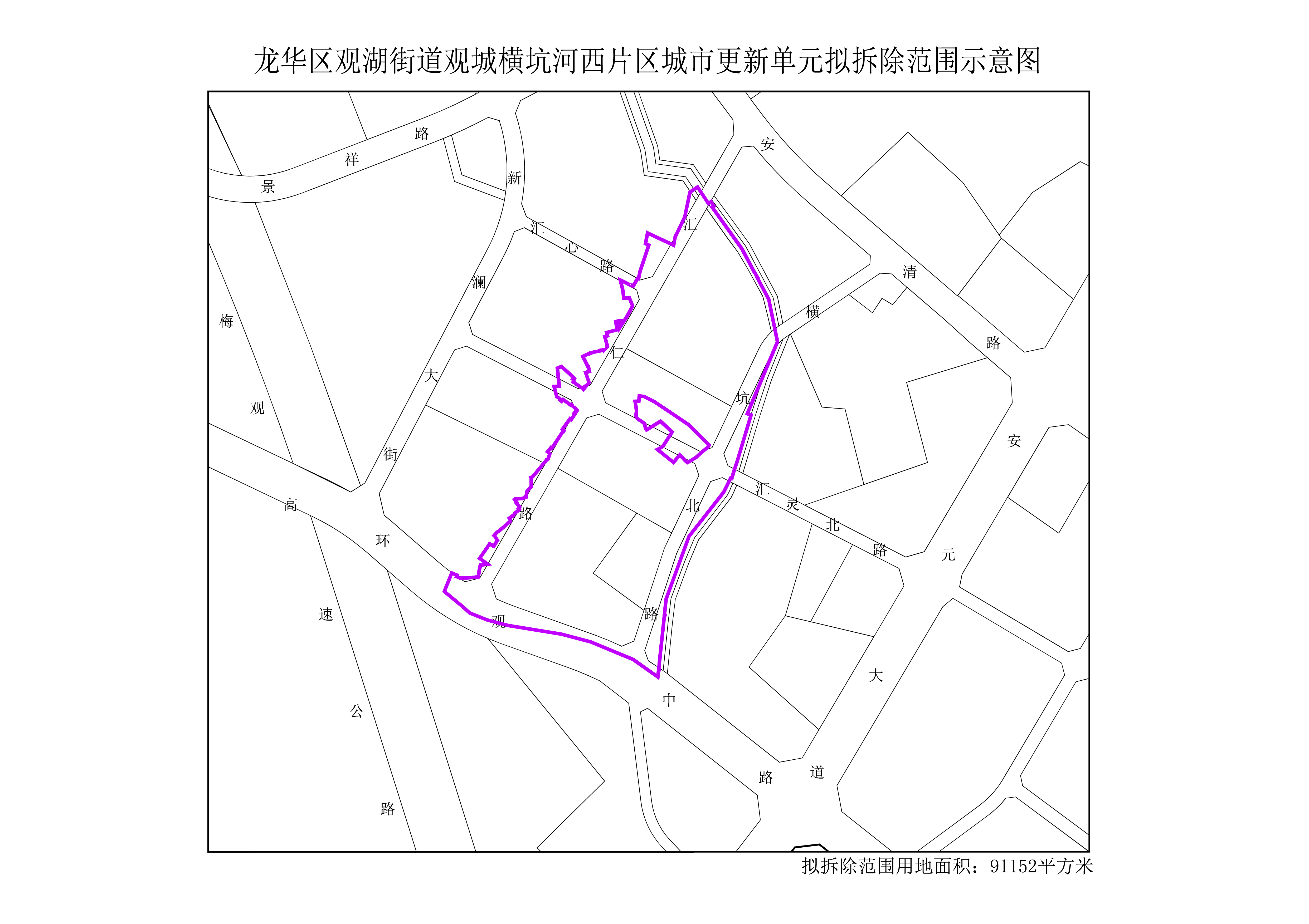 附件1:龙华区观湖街道观城横坑河西片区城市更新单元拟拆除范围示意图