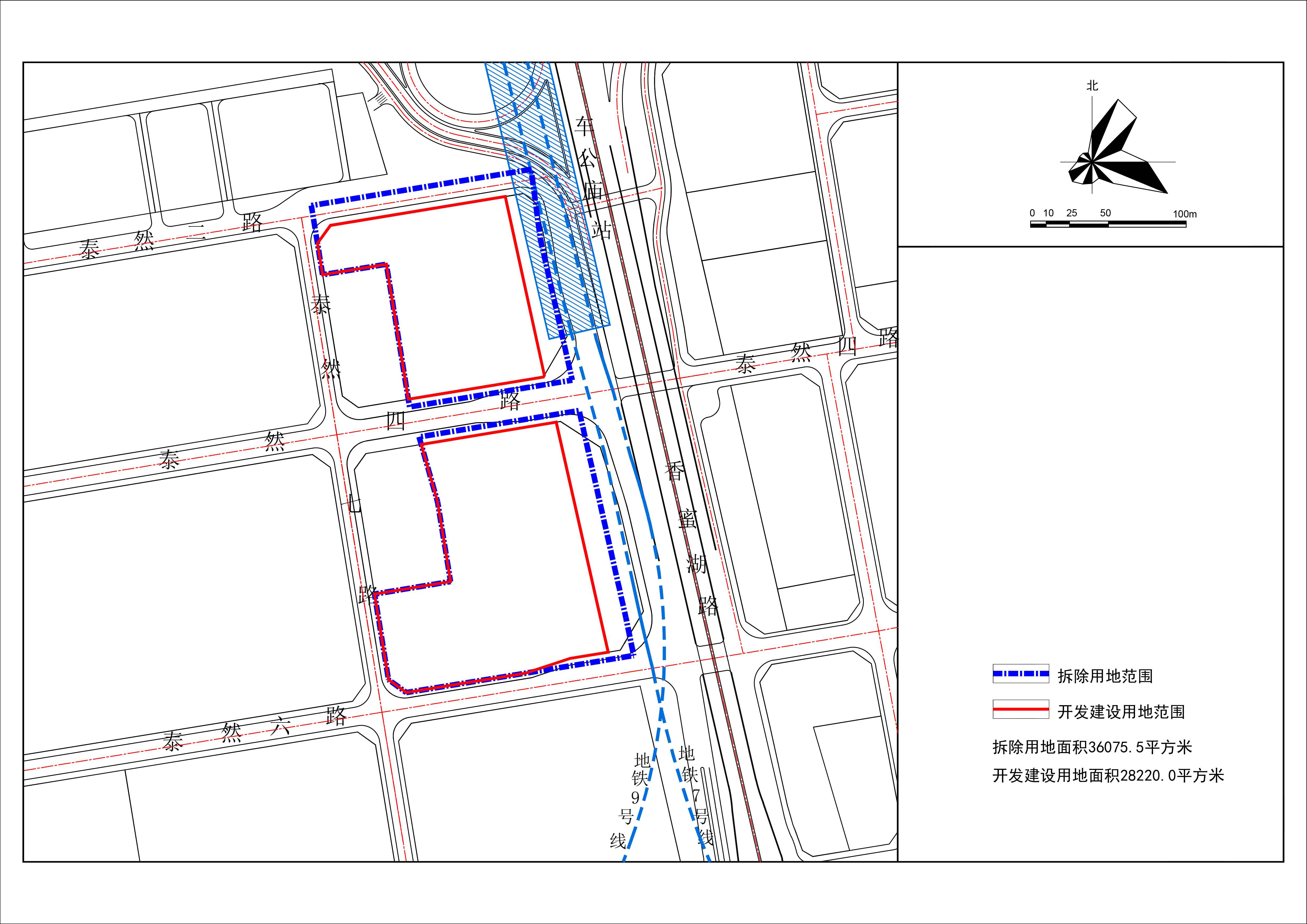 福田区沙头街道车公庙泰然工业区第一城市更新单元二期项目(以下简称“本项目”)位于泰然二路、六路、七路,香蜜湖路围合区域。本项目拆除用地面积36075.5平方米,开发建设用地面积28220平方米。(详见附件1)。